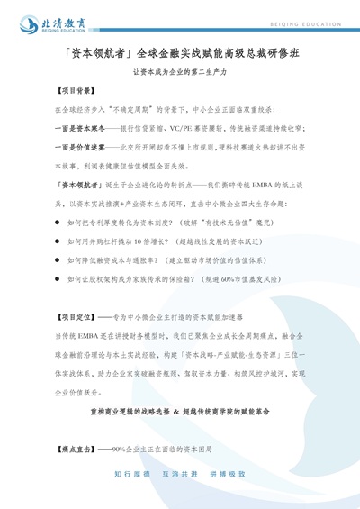 资本领航者全球金融实战赋能高级总裁研修班报名网站:http://www.tsinghuapeixun.com/qhzcb/jr/176.html
